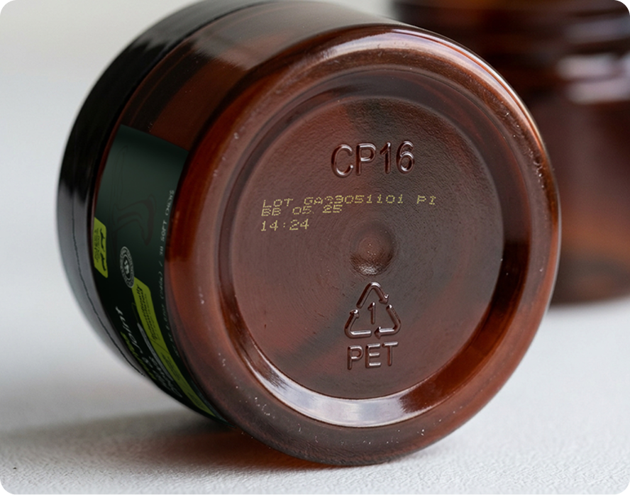 Each tub and bottle has a batch code underneath, ensuring full traceability.