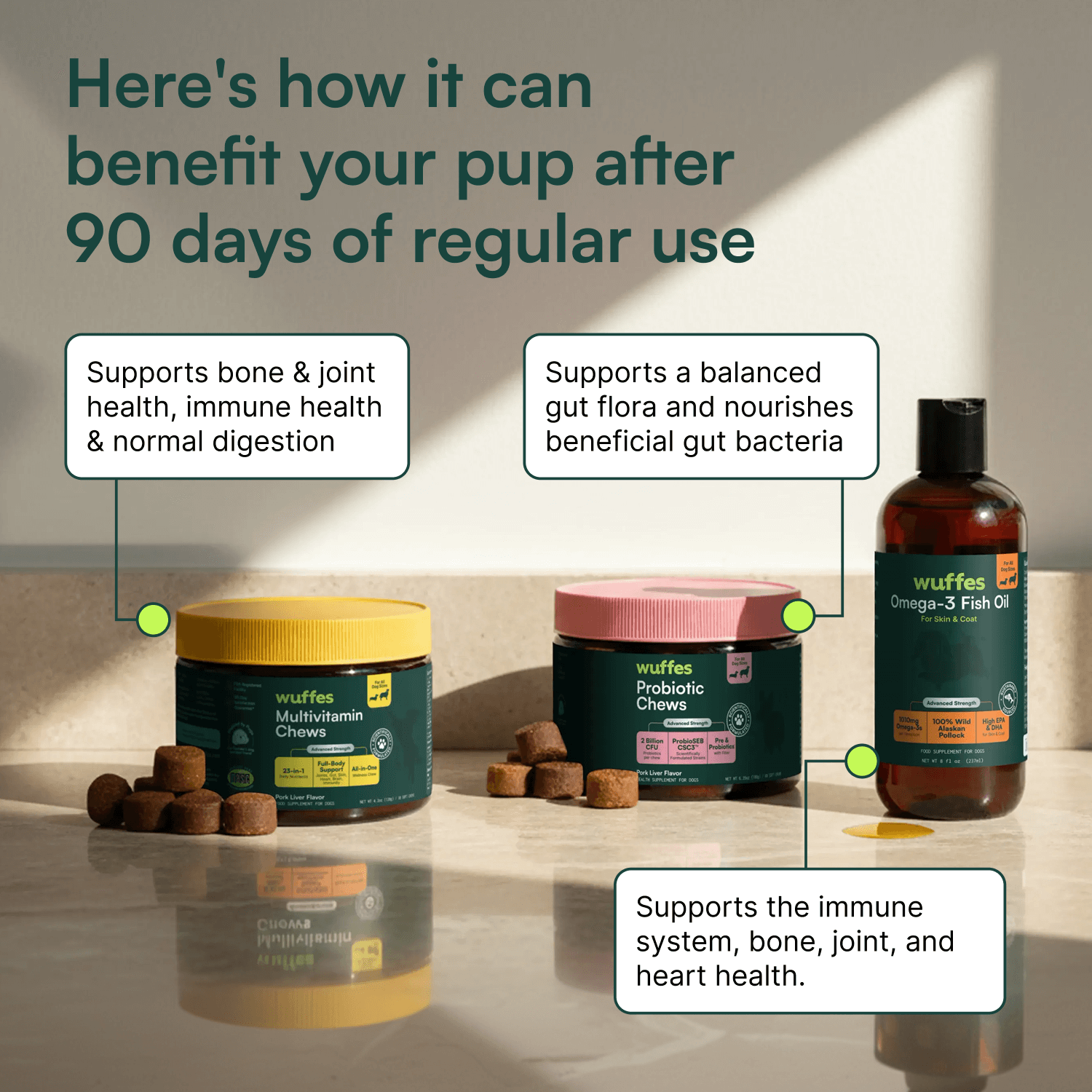 Here’s some helpful information on how to take Wuffes, and what to expect in the first 3 months of consistent use.